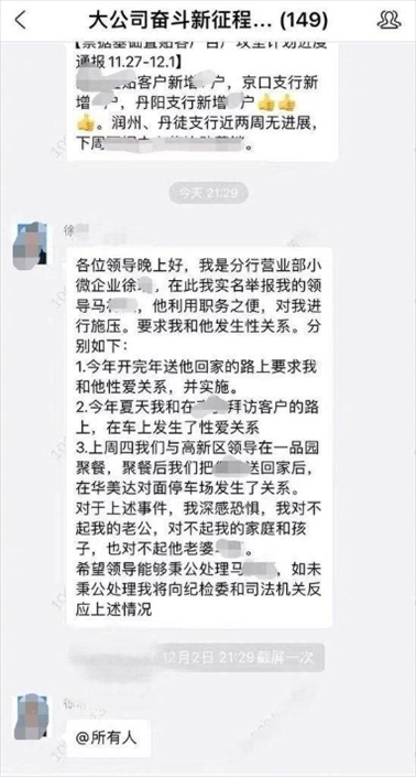 【8點見】銀行回應(yīng)女員工舉報被領(lǐng)導(dǎo)施壓發(fā)生性關(guān)系
