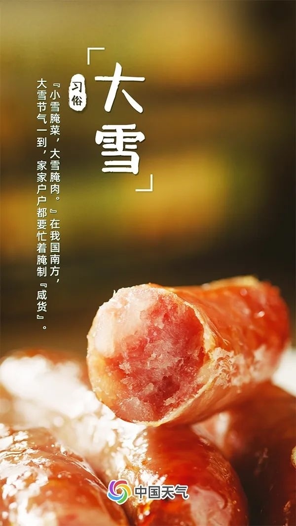 大雪節(jié)氣一到,北方多地也迎來了一年一度的冰雪旅游季。賞雪景、觀冰燈,雪場(chǎng)馳騁、冰場(chǎng)嬉戲,寒冷的冬天也多了奇妙樂趣。而在南方,“小雪腌菜,大雪腌肉”,此時(shí),家家戶戶都要忙著腌制“咸貨”,用傳統(tǒng)的制作方法,將新鮮的原料加工成香氣襲人的美食,以迎接即將到來的新年。