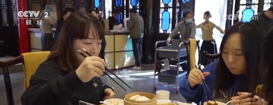 上午,記者在揚(yáng)州某茶社看到,店內(nèi)座無虛席,不少游客正排隊等待叫號。