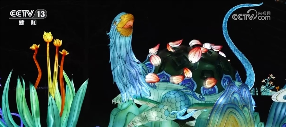 據(jù)組織方介紹,本次燈會將中國的燈彩制造技藝與巴黎風(fēng)情園的道路園景有序結(jié)合,整場燈會以點(diǎn)連線、穿線成面,共設(shè)東情西韻、山海有靈、煙火市集三大展區(qū)。2024年適逢龍年,龍的元素出現(xiàn)在景區(qū)各處。穿行在園區(qū),法國觀眾不僅能欣賞到傳統(tǒng)的十二生肖、亭臺樓閣,更能沉浸在《山海經(jīng)》各類瑞獸奇珍創(chuàng)造的奇幻世界當(dāng)中。