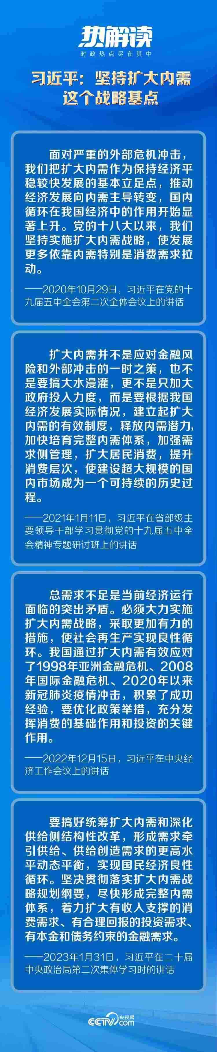 黨的十八大以來,習(xí)近平總書記從我國經(jīng)濟運行的實際出發(fā),對擴大內(nèi)需作出了一系列重要論述,為實施擴大內(nèi)需戰(zhàn)略提供了科學(xué)指引。