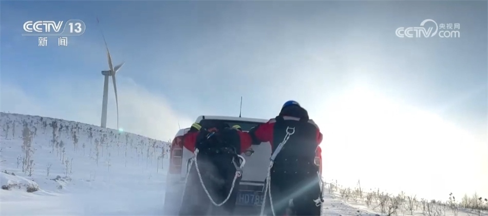 在河北張家口沽源縣,最高氣溫只有零下17攝氏度。華電冀北新能源馳盛風(fēng)電場(chǎng)的運(yùn)維員工,冒著寒風(fēng)檢查線(xiàn)路覆冰情況,發(fā)現(xiàn)并消除線(xiàn)路覆冰101公里。