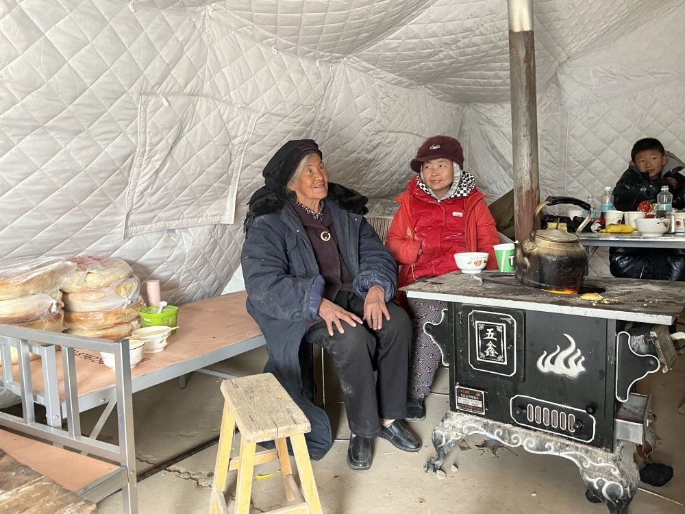 張郭家村是個(gè)小村,總共才350多人。地震發(fā)生后,全村絕大多數(shù)房屋受損,通村道路遭遇塌方,萬幸無人遇難。群眾積極自救互救,州縣鄉(xiāng)三級(jí)干部下沉,工作有序開展。19日晚至20日晨,部隊(duì)官兵徹夜為村上搭建起26頂帳篷。零下十幾度的夜晚,群眾再也不用在戶外燒柴取暖了。