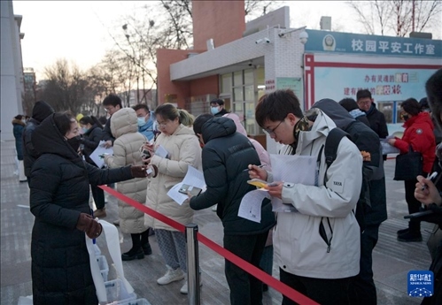 12月23日,在黑龍江省哈爾濱市,考生在哈爾濱理工大學(xué)考點排隊進入考場。