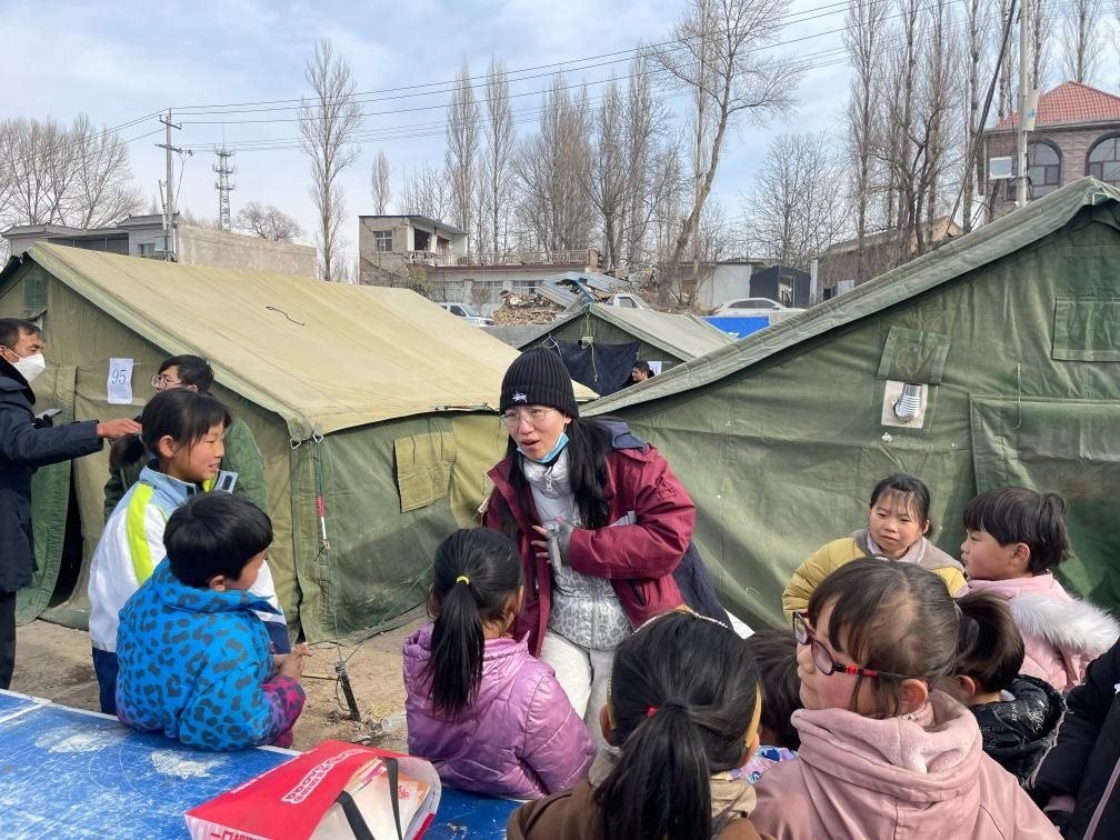 21日上午,馮小霞和24名同伴就從與積石山縣毗鄰的廣河縣抵達災(zāi)區(qū),開展志愿服務(wù)。地震發(fā)生后,和馮小霞類似,來自多地的志愿者化身“帳篷城”里的“孩子王”,為大家開設(shè)了繪畫、文化課程輔導(dǎo)、防災(zāi)救災(zāi)知識等內(nèi)容的志愿服務(wù)。