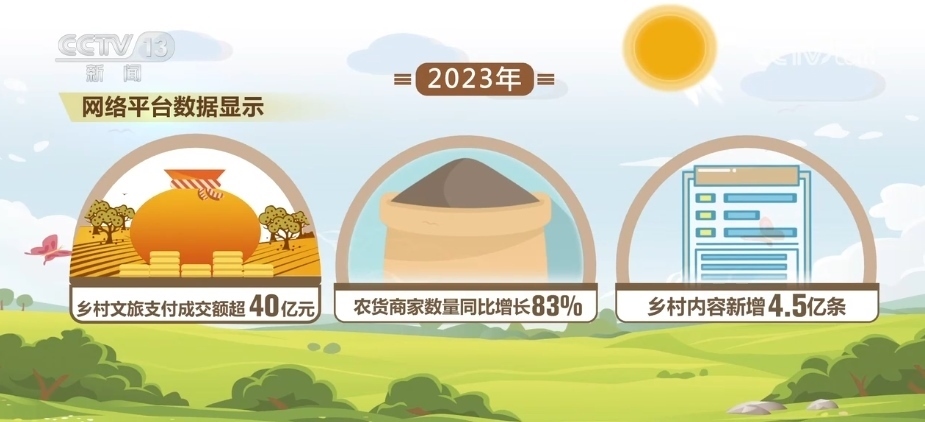 相關(guān)網(wǎng)絡平臺數(shù)據(jù)顯示,2023年,鄉(xiāng)村文旅支付成交額超40億元,農(nóng)貨商家數(shù)量同比增長83%,鄉(xiāng)村內(nèi)容新增4.5億條。數(shù)字技術(shù)和平臺在鄉(xiāng)村電商、鄉(xiāng)村文旅、鄉(xiāng)村人才等方面發(fā)揮了重要作用。