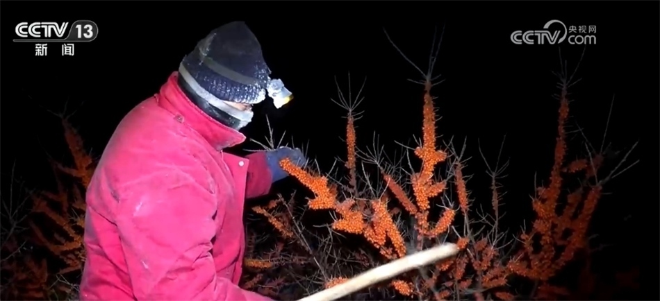 從剛剛的畫面中,我們領(lǐng)略了冰雪山河的壯美遼闊。接下來,我們要去看看冰天雪地里熱火的產(chǎn)業(yè)。眼下正值隆冬時(shí)節(jié),但在兵團(tuán)第九師白楊市,這段時(shí)間,當(dāng)?shù)氐纳臣M(jìn)入了豐收期,在茫茫雪原上,種植戶們忙著采收沙棘果。