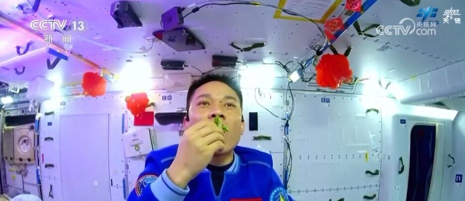 航天員 蔡旭哲:一共長了兩棵,吃了一棵。另外一棵留下來了,一直長大讓它變成了種子,后邊都開花了。親自品嘗到了這種生態(tài),這個特別感覺到很美味。能夠嘗到自己在太空種出來的生菜,我覺得是感到無比幸福。