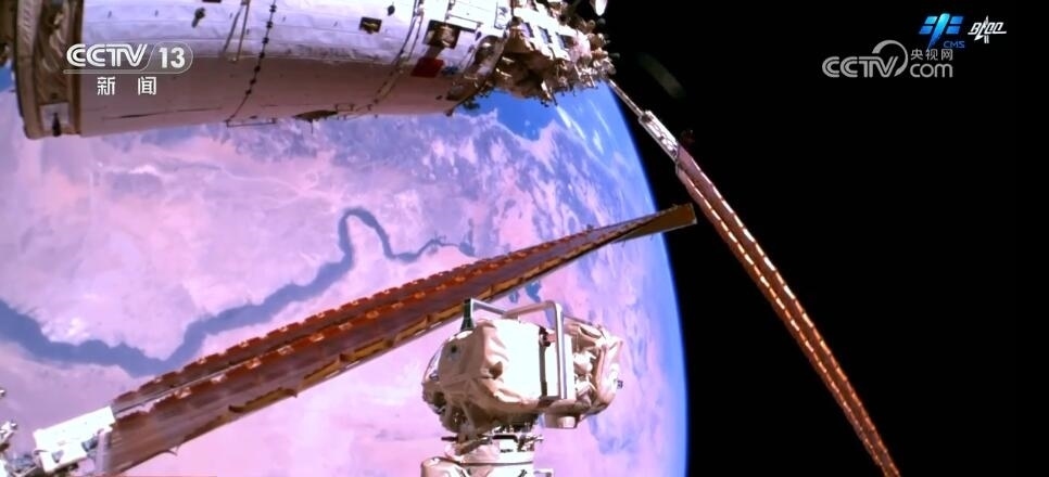 2023年10月26日19時34分,神舟十六號航天員乘組打開“家門”,歡迎神舟十七號航天員湯洪波、唐勝杰、江新林入駐“天宮”。兩個乘組在軌共同生活了約5天后,神舟十六號航天員在返回地球途中,還完成了此次飛行任務(wù)最后一項工作,首次拍攝了以地球為背景的中國空間站全景高清照片。