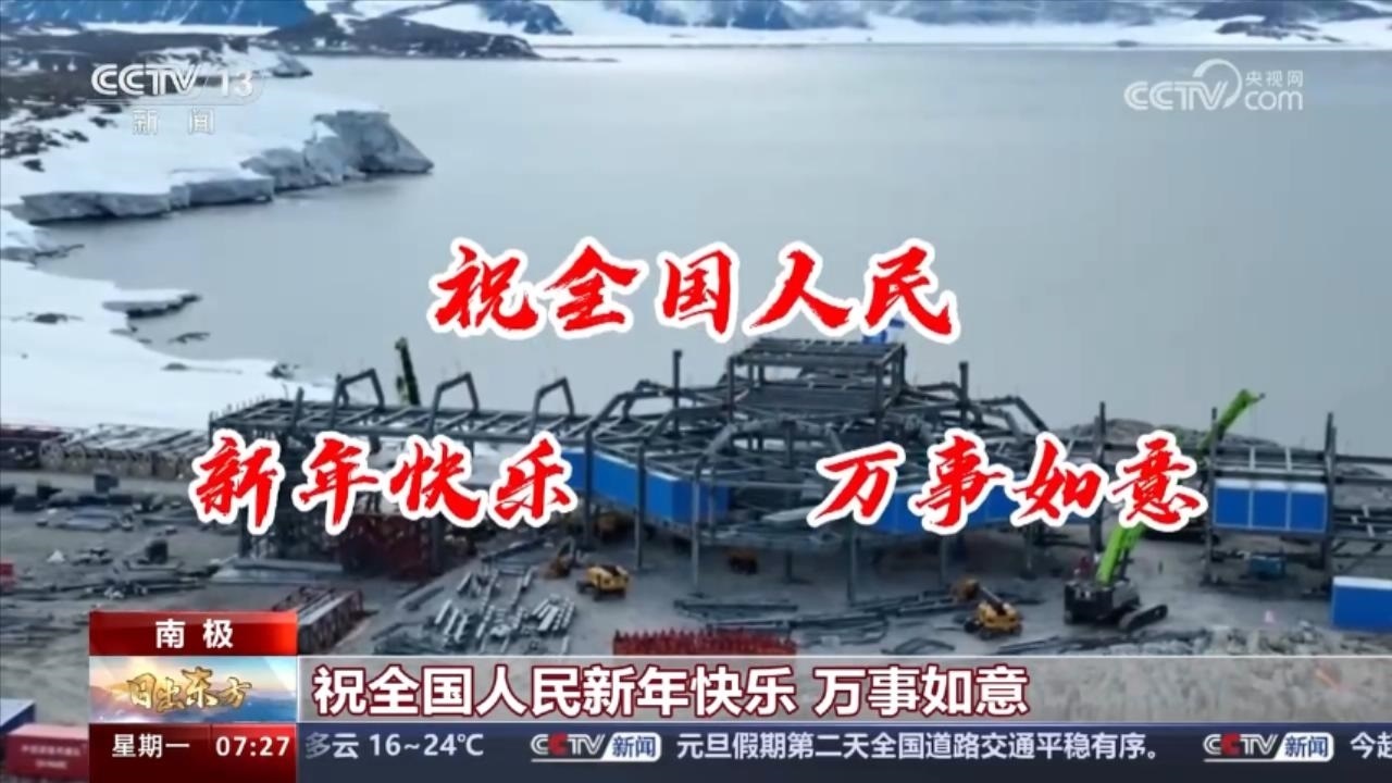 盡管元旦沒(méi)有休假,但羅斯海新站舉行了升國(guó)旗儀式,羅斯海新站建設(shè)者們說(shuō)——“我們?cè)谀蠘O羅斯海新站建設(shè)現(xiàn)場(chǎng),祝全國(guó)人民新年快樂(lè)!萬(wàn)事如意!”