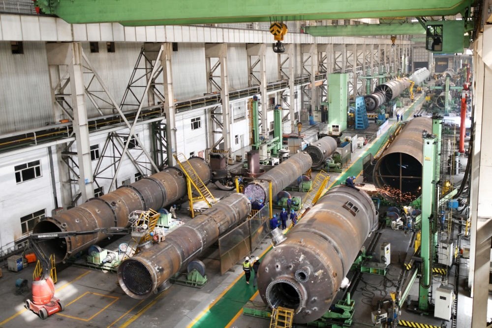 工人在哈電集團哈爾濱鍋爐廠有限責(zé)任公司生產(chǎn)車間作業(yè)(2023年4月12日攝)。新華社記者 王建威 攝