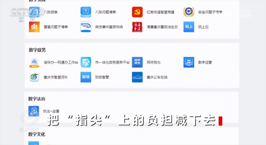 工作重心向基層服務(wù)轉(zhuǎn)變,才能切實看到為基層減負的實效。2021年,重慶市一體化、智能化、數(shù)字化政務(wù)工作平臺“渝快政”正式發(fā)布。“渝快政”在全市范圍內(nèi)實現(xiàn)了上下層級、橫向跨部門之間的協(xié)同,一個“渝快政”App就可以支持過去40多項高頻次的政務(wù)辦公應(yīng)用,過去各部門App的相應(yīng)功能、各種工作群都整合在了“渝快政”一個App里面。一表通、“141”基層智治平臺也已經(jīng)接入了“渝快政”,正在向全市推廣。現(xiàn)在,文勇手機里的53個工作群已經(jīng)解散,郝歡手機里十幾個部門App也已經(jīng)被整合到“渝快政”。?
