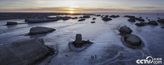 青海海西,大柴旦行委西臺地區(qū),水上雅丹冬季日出風光。