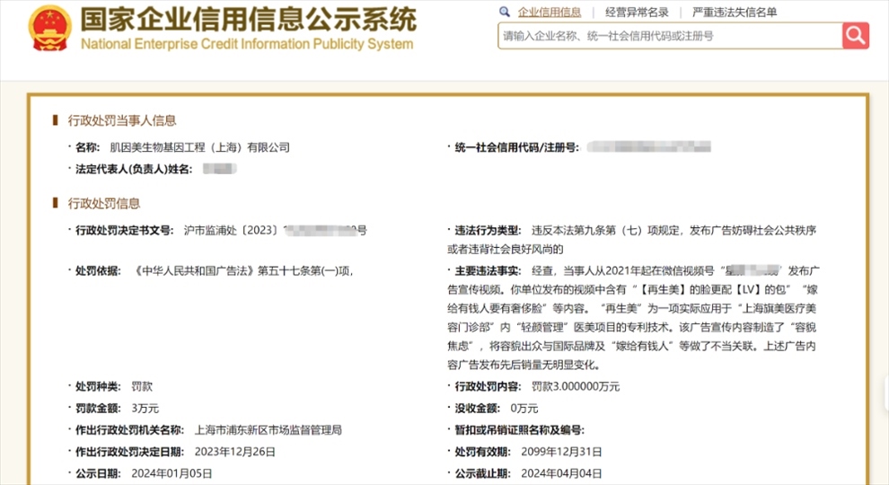 ·宣稱“嫁給有錢人要有奢侈臉”,上海一商家被罰3萬元。