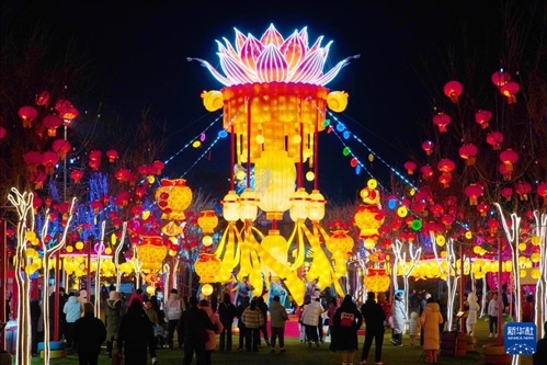 1月4日,人們?cè)?024年淄博玉黛湖花燈會(huì)上賞燈游覽。新華社記者 徐速繪 攝