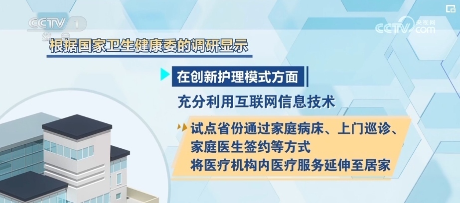 在創(chuàng)新護理模式方面,充分利用互聯(lián)網(wǎng)信息技術,試點省份通過家庭病床、上門巡診、家庭醫(yī)生簽約等方式,將醫(yī)療機構內(nèi)醫(yī)療服務延伸至居家。目前,共計有3000多個醫(yī)療機構,可以上門為居家老年人提供7大類60多項醫(yī)療護理服務項目,減輕了患者和家屬的負擔。