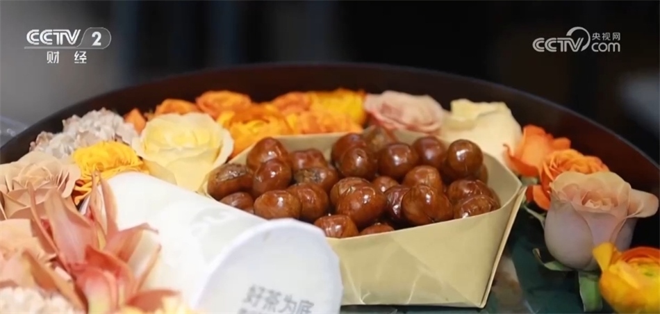 一些商家也是緊跟潮流,順勢(shì)推出“入冬四件套”禮盒。這家花店把鮮花、奶茶、糖葫蘆、糖炒栗子組合起來(lái)售賣(mài),受到許多消費(fèi)者的歡迎。?