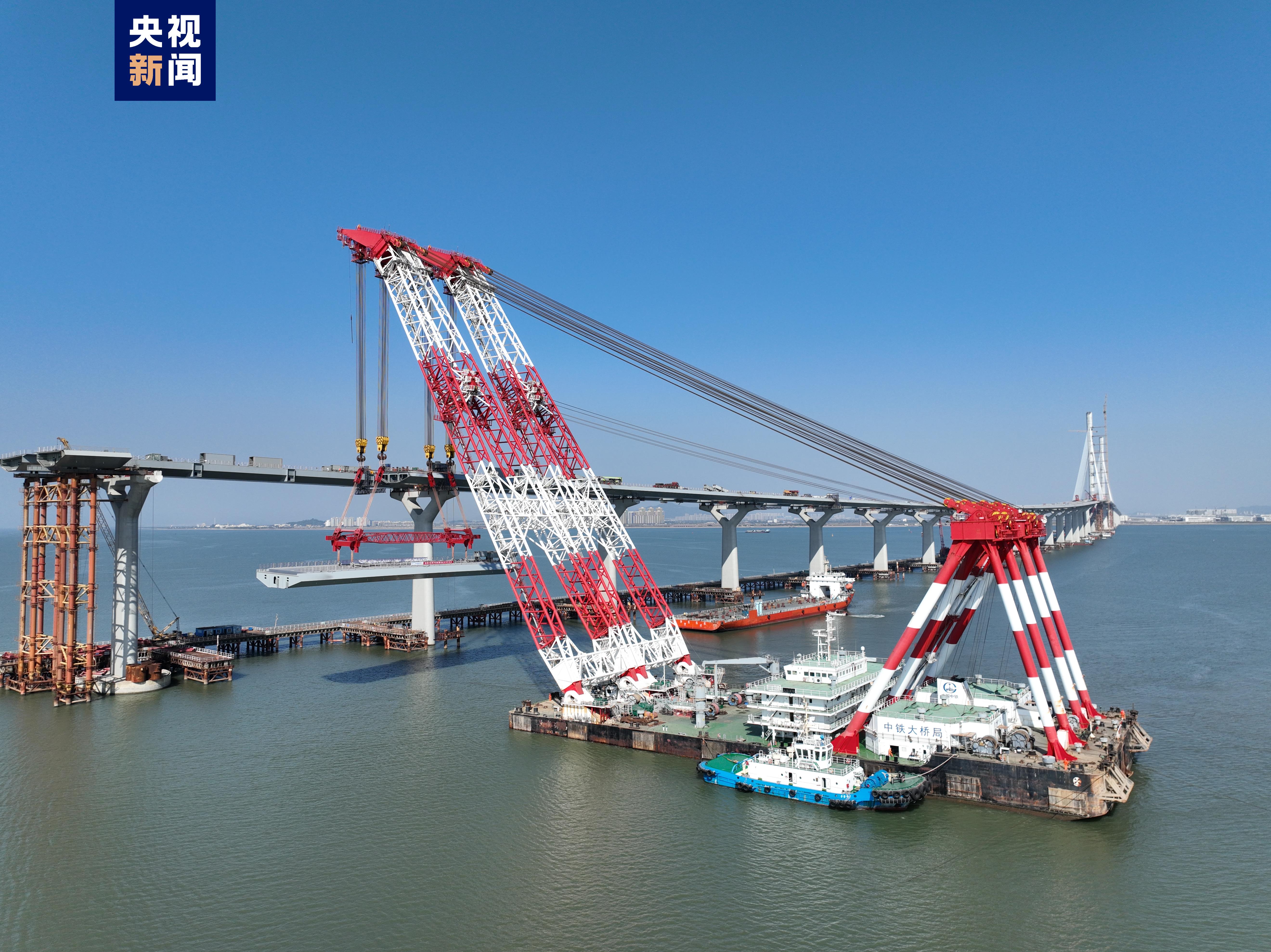 1月15日下午,隨著最后一片鋼箱梁架設(shè)到位,黃茅??绾Mǖ乐幸龢蝽樌淆垺勺I现鳂颉S茅海大橋與高欄港大橋成功完成海上“牽手”。