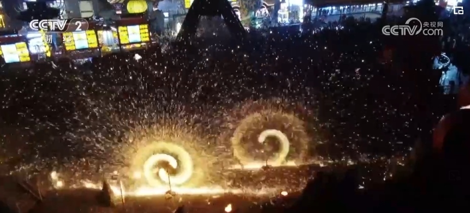 千年非遺打鐵花、香火龍、夢幻劉三姐等多個爆款節(jié)目“火力全開”、好戲連臺。在打鐵花表演現(xiàn)場,鐵花四處飛濺,仿佛“焰火”綻放,吸引游客駐足拍照。