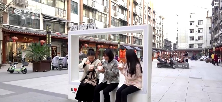 不僅如此,當(dāng)?shù)剡€對(duì)巷子的屋頂、外墻、地面等進(jìn)行升級(jí)改造。原來(lái)破舊的商業(yè)街改造后白墻黛瓦、古樸有致,并且融入了很多時(shí)尚的元素。用彩燈制成的當(dāng)?shù)鼐包c(diǎn)示意圖、主題雕塑、方言地標(biāo)休息區(qū)等受到年輕人的喜愛。環(huán)境好了,人氣也旺了,曾經(jīng)的“水巷子”徹底擺脫“水”的標(biāo)簽。