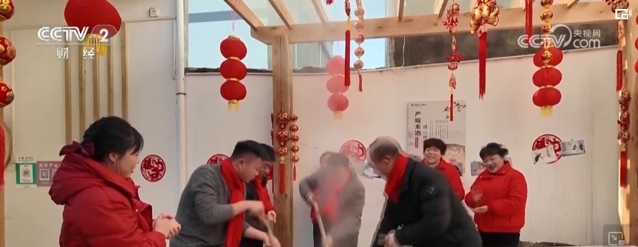 臘月里,糍粑香。打糍粑是湖北大悟縣過春節(jié)必不可少的年俗活動,糍粑也是大悟當?shù)剡^年必吃的一道美食。清洗灶臺、添柴燒火,把事先洗好、泡好的糯米倒入木甑中上鍋蒸煮。大約一個多小時后,熱氣騰騰的糯米飯蒸熟了。大家抬起木甑,將糯米飯倒入石臼中,反復(fù)捶打、揉捻, 寓意著來年風調(diào)雨順、平平安安。