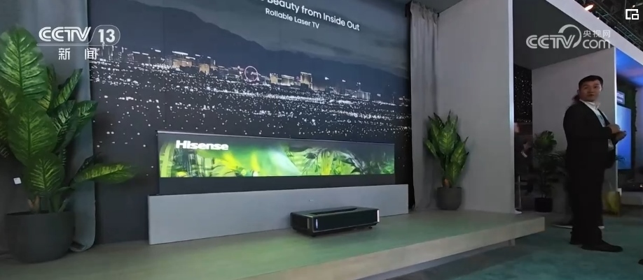 在剛剛結(jié)束的美國國際消費(fèi)電子展上,超1000家中國企業(yè)參展。一款像地毯一樣能卷起來的卷曲激光電視廣受關(guān)注,引來眾多外國客戶洽談合作。