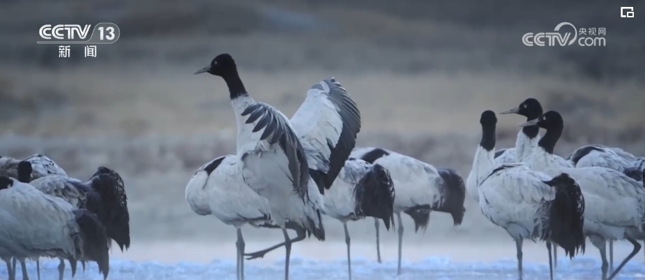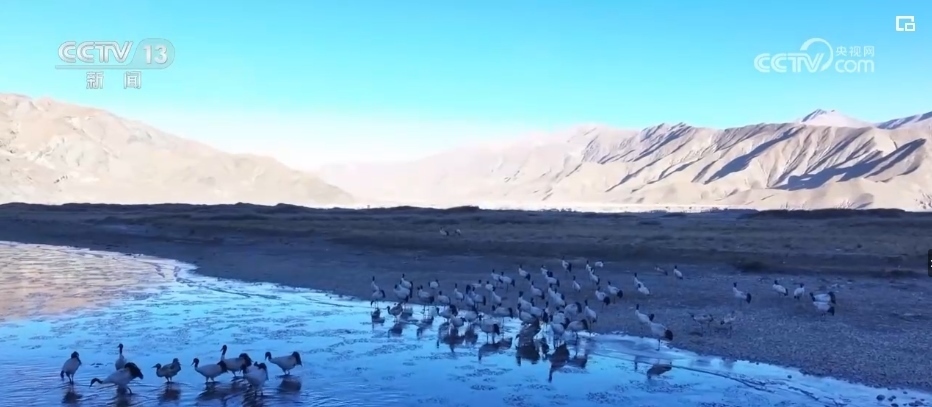西藏的越冬水鳥主要有黑頸鶴、斑頭雁、赤麻鴨等。監(jiān)測隊設(shè)立了505個觀測點,共記錄調(diào)查軌跡數(shù)407條,觀測到水鳥45種。其中,包括兩種國家一級保護動物,分別是黑頸鶴和白尾海雕。7種國家二級保護動物,分別是灰鶴、鴛鴦、白額雁、斑頭秋沙鴨、黑頸鸊鷉、角鸊鷉、花臉鴨。還有重要生態(tài)、科學、社會價值的陸生野生動物36種。