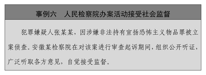 ——拓寬監(jiān)督渠道。中國執(zhí)法司法辦案機關(guān)持續(xù)拓寬監(jiān)督渠道,通過多種方式強化社會監(jiān)督,不斷增強執(zhí)法司法透明度,防止執(zhí)法權(quán)、司法權(quán)被濫用。人民法院通過審判流程信息公開、裁判文書公開、執(zhí)行信息公開、庭審公開等加大司法公開力度,及時公布法院審判、執(zhí)行工作情況。人民檢察院推行檢務(wù)公開,依法公開與檢察職權(quán)相關(guān)的活動和事項,并充分運用現(xiàn)代化信息手段,建立檢務(wù)公開信息平臺,設(shè)置電子顯示查詢設(shè)備,開通網(wǎng)站、網(wǎng)頁等,方便檢務(wù)信息查詢。公安機關(guān)推行警務(wù)活動公開,行政處罰遵循公開原則,執(zhí)法過程、處罰結(jié)果自覺接受社會和公民的監(jiān)督。司法行政機關(guān)推行獄務(wù)公開,將監(jiān)獄執(zhí)法工作的條件、程序、結(jié)果依法向社會公開,加強監(jiān)獄工作的規(guī)范化、制度化、法治化建設(shè),規(guī)范執(zhí)法行為。