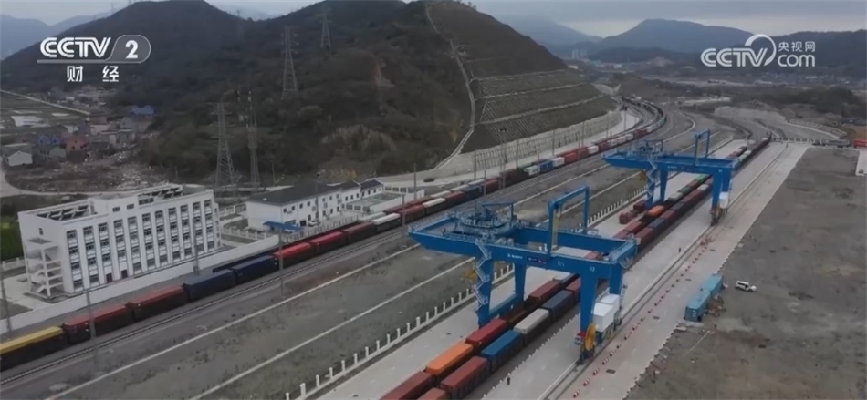 總臺央視記者 馬佳倫:這里是位于寧波舟山港北侖第一集裝箱碼頭的作業(yè)區(qū)。此刻一輛來自金華,載五十節(jié)車廂,共計100標(biāo)箱量的列車正在進站。去年底甬金鐵路開通運營以來,寧波舟山港新增一條重要疏運通道,世界第一大港寧波舟山港與世界小商品之都義烏(間)運行效率大大提升。