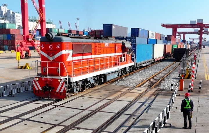 水路大進(jìn)大出,鐵路風(fēng)馳電掣。元旦當(dāng)天,連云港新年開行的首趟中歐班列載著汽車配件、家用電器等,從中哈物流合作基地出發(fā),駛往中亞國(guó)家;同日,南通海安物流基地內(nèi),一列滿載貨物的班列鳴笛啟程開往越南河內(nèi)。有去有回,不久之后,“鋼鐵駝隊(duì)”會(huì)把來自歐洲、中亞和東南亞的機(jī)械、木材等運(yùn)回中國(guó),開啟新一輪國(guó)際循環(huán)。