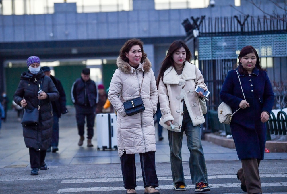 2024年1月15日,在新疆自貿(mào)試驗區(qū)霍爾果斯片區(qū)的中哈霍爾果斯國際邊境合作中心,商人通過快捷通道進入園區(qū)。新華社記者 趙戈 攝