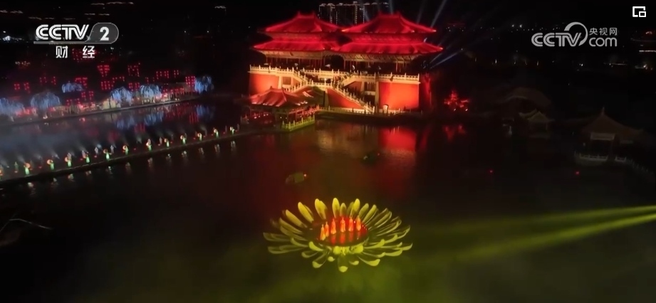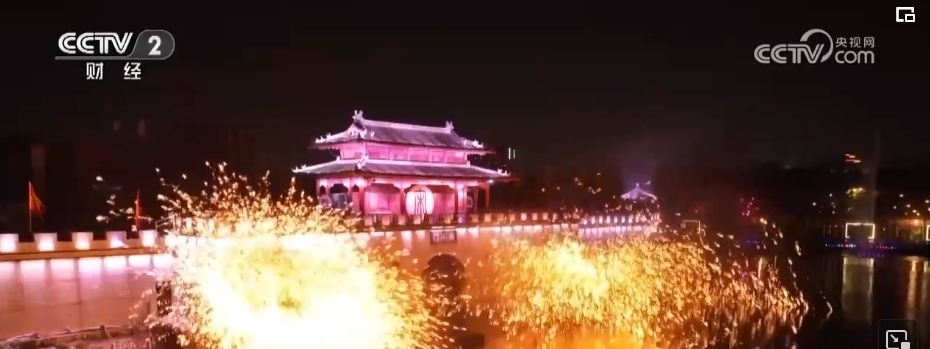 當(dāng)夜幕降臨,八朝古都開封也在燈光的裝扮下流光溢彩。打鐵花是流傳于豫晉地區(qū)民間傳統(tǒng)的煙火,至今已傳承千余年。在清明上河園內(nèi),表演者先將鐵水舀起拋向空中,再用力擊打空中的鐵水,一時(shí)間鐵花飛濺、流星如瀑。園內(nèi),亭臺(tái)樓閣雕梁畫棟、虹橋清波舟船往來(lái),大型實(shí)景水上演出再現(xiàn)了北宋汴梁的盛世繁榮。