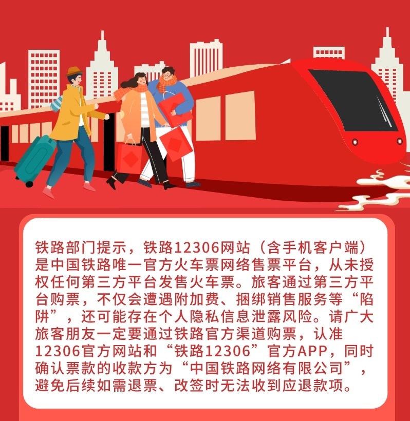 今年春運(yùn),鐵路部門升級(jí)了12306候補(bǔ)購(gòu)票、購(gòu)票信息預(yù)填、起售提醒訂閱、學(xué)生和務(wù)工人員專區(qū)預(yù)約購(gòu)票等服務(wù)功能,優(yōu)化車票改簽規(guī)則,豐富12306信息通知服務(wù)內(nèi)容,進(jìn)一步改善旅客購(gòu)票出行體驗(yàn)。