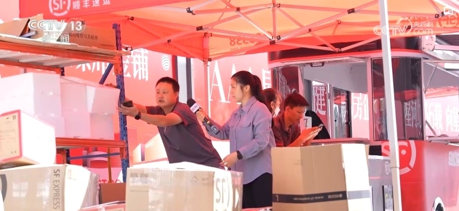 記者在現(xiàn)場發(fā)現(xiàn),一些毛絨玩具等商品被零散地放在快遞點,并沒有及時被打包??爝f員說他從早上7時30分就提前過來,但包材很快就用完了,這是他沒想到的。