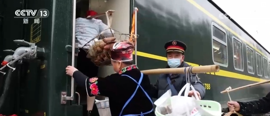這趟“慢火車”,是鄉(xiāng)親們走親訪友的“幸??燔嚒?,更是把大山里的農特產品送到山外售賣的“致富快車”。新春臨近,列車上的農特產品車廂變得熱鬧起來,村民們將自家的年貨拿上車售賣,車廂里喜氣洋洋。