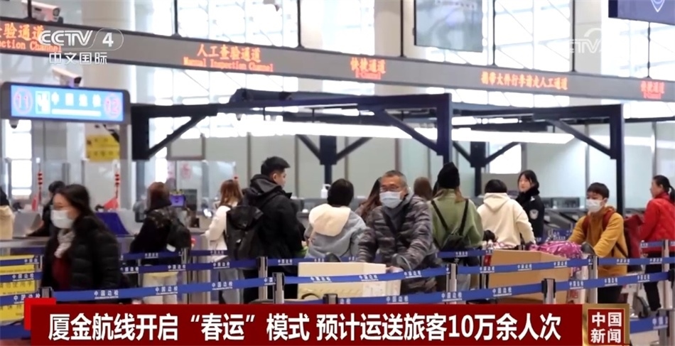 央視網(wǎng)消息:作為兩岸旅客往返的“黃金通道”,廈金“小三通”客運航線從26日起開啟“春運”模式。據(jù)高崎邊檢站介紹,今年春運,廈金航線預(yù)計將運送旅客10萬余人次。?