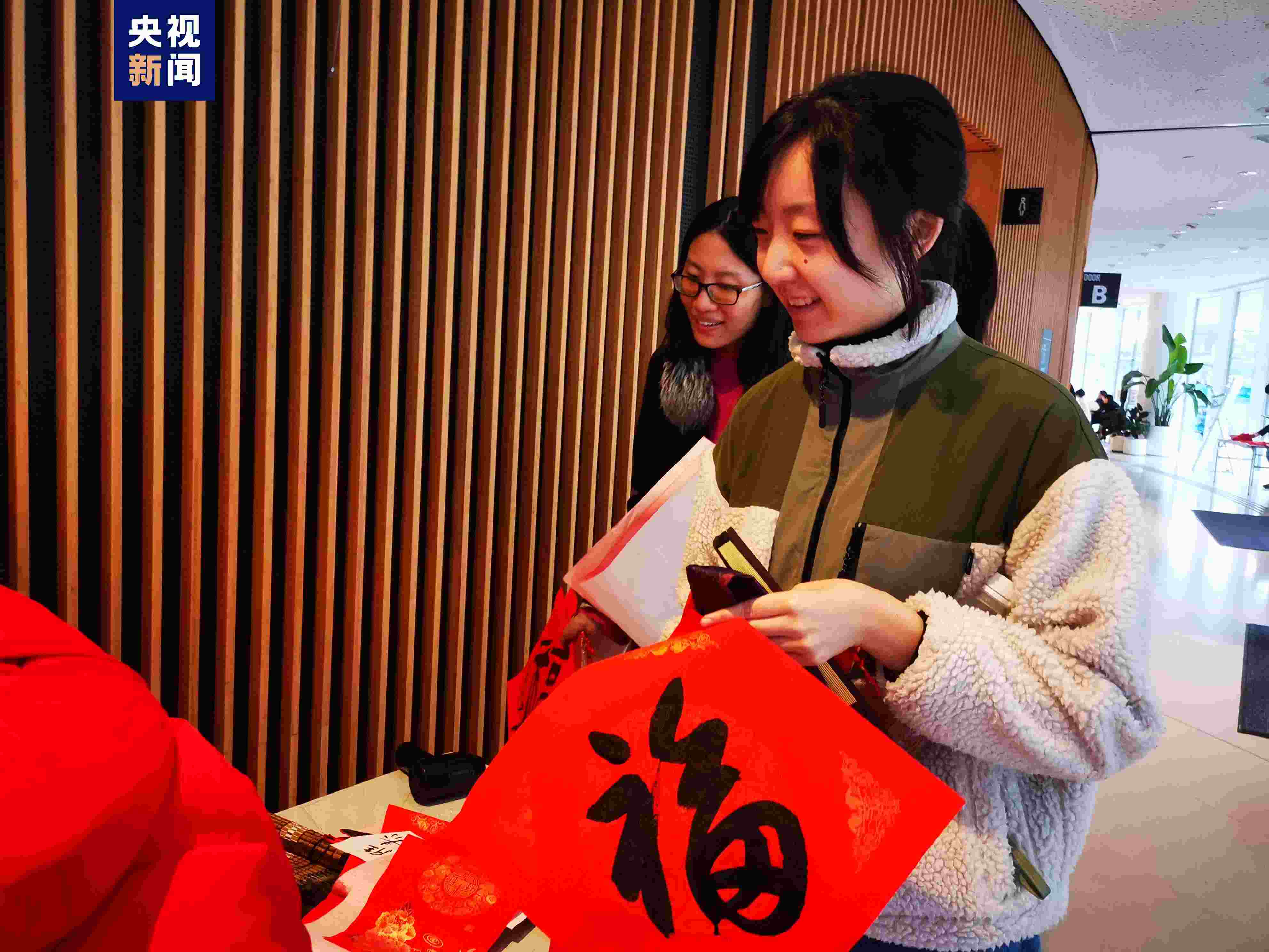 除了佩戴小龍帽,大家或手拿龍玩偶,或高舉福字,或展示對(duì)聯(lián),在歡聲笑語中共同迎春。