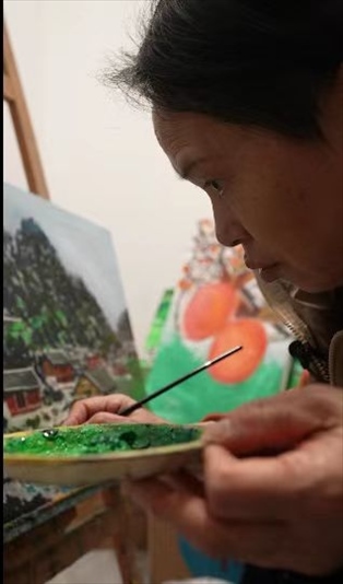 一支畫筆,一盒顏料,一張畫布,這幾乎是雙溪鎮(zhèn)能提供給王柳云的全部。那段時(shí)間,她走街串巷,畫山,畫水,畫民居,也“畫”心。憑著一種隱約的天賦和純天然的熱愛,大概過了三個(gè)月,王柳云已經(jīng)能大批量地賣畫。