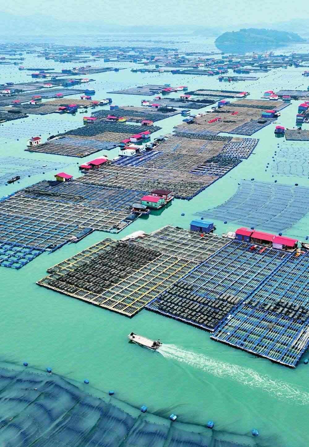 晨光灑在海面,萬(wàn)頃碧波間,一列列網(wǎng)箱如同阡陌縱橫的海上農(nóng)田,色澤金黃的大黃魚(yú)悠然歡游,穿梭其間的漁民們徜徉在“金黃色的美夢(mèng)”中。