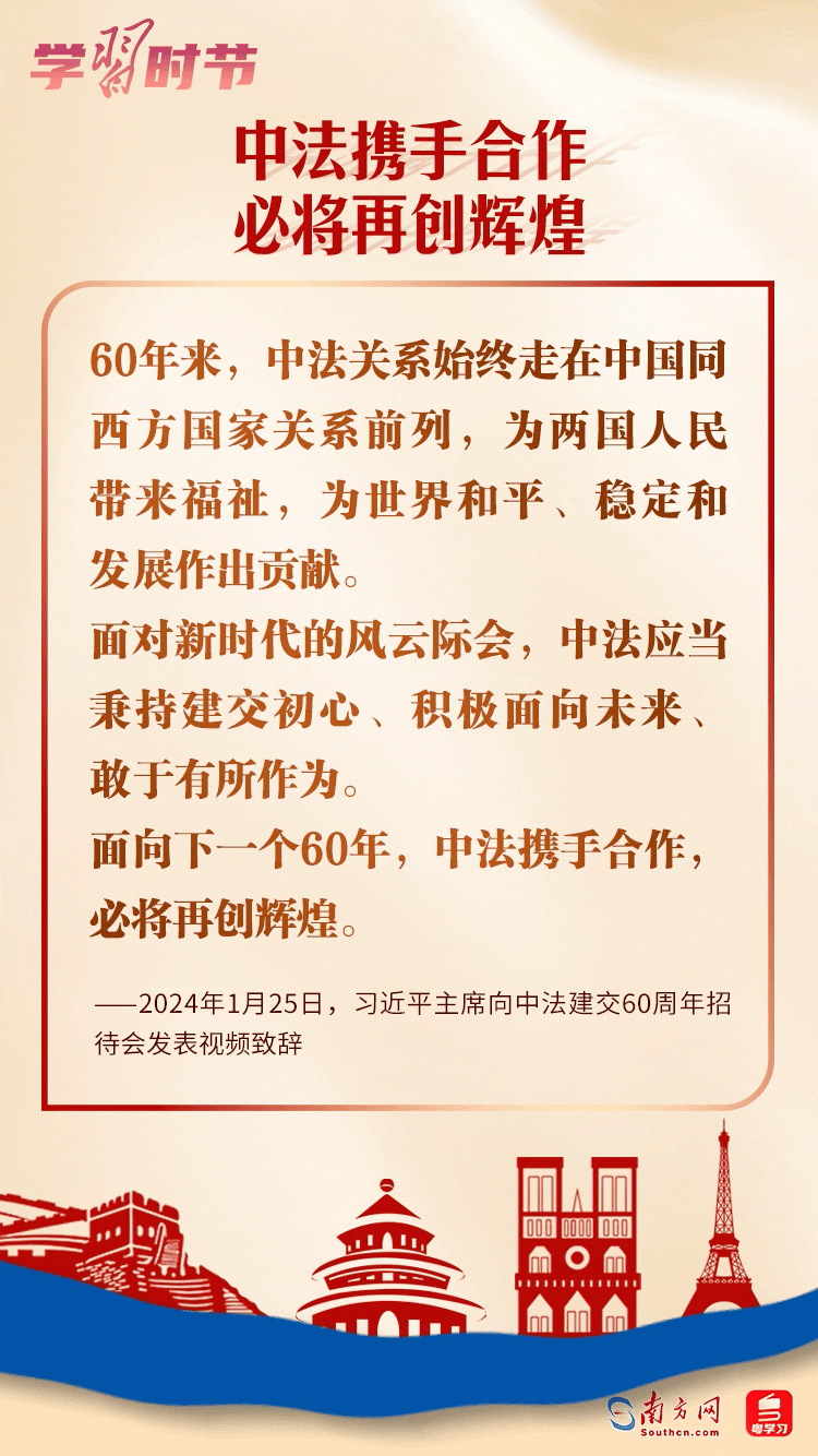 法國(guó)是第一個(gè)同中國(guó)建立正式外交關(guān)系的西方大國(guó),“獨(dú)立自主、相互理解、高瞻遠(yuǎn)矚、互利共贏”的中法建交精神引領(lǐng)兩國(guó)關(guān)系始終走在中國(guó)與西方大國(guó)關(guān)系前列。歷經(jīng)60年風(fēng)雨,中法兩國(guó)將繼續(xù)秉持獨(dú)立自主精神屹立于世界大國(guó)之林,將繼續(xù)以成熟穩(wěn)健的雙邊關(guān)系為動(dòng)蕩不安的世界提供更多的穩(wěn)定性。