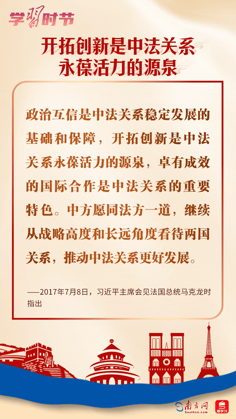 習(xí)近平主席一向高度重視中法關(guān)系發(fā)展,在許多場(chǎng)合作出重要論述,讓我們一起學(xué)習(xí)。