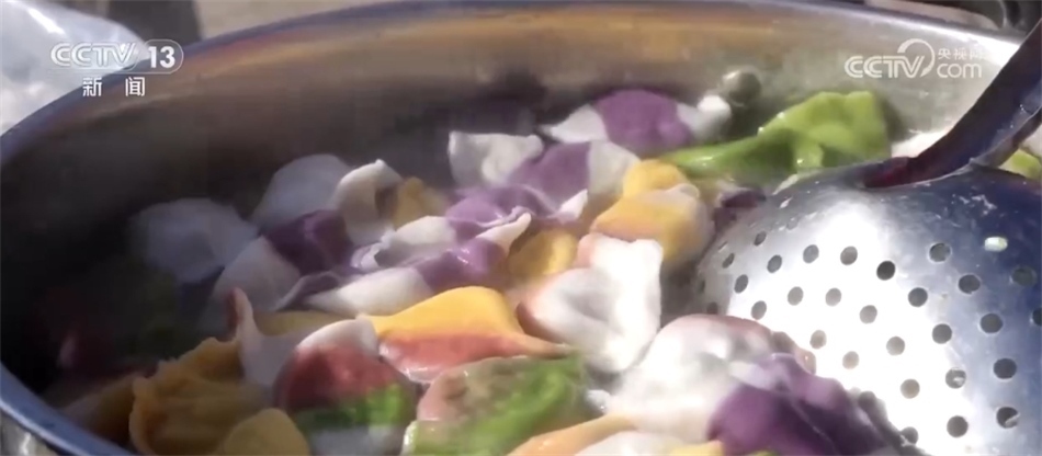 在山東慶云縣的東辛店鎮(zhèn)大集上,菊花餡兒的水餃吸引了不少游客駐足品嘗。