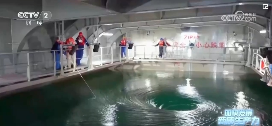 依靠首創(chuàng)的“船載艙養(yǎng)”模式,國信1號養(yǎng)殖工船,每年能實現(xiàn)3700噸高品質(zhì)魚類和650噸優(yōu)質(zhì)蛋白的供給。到了收獲的時候,艙內(nèi)的大黃魚將通過吸魚泵和傳送帶直接轉(zhuǎn)運至休眠池,在那里進(jìn)行快速降溫休眠鎖鮮。