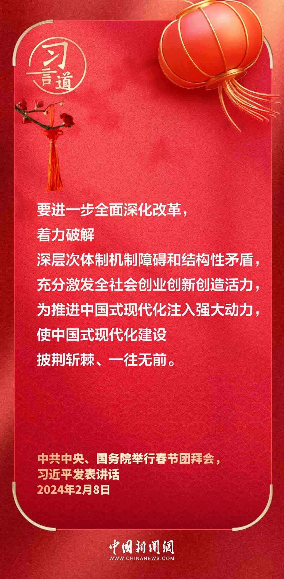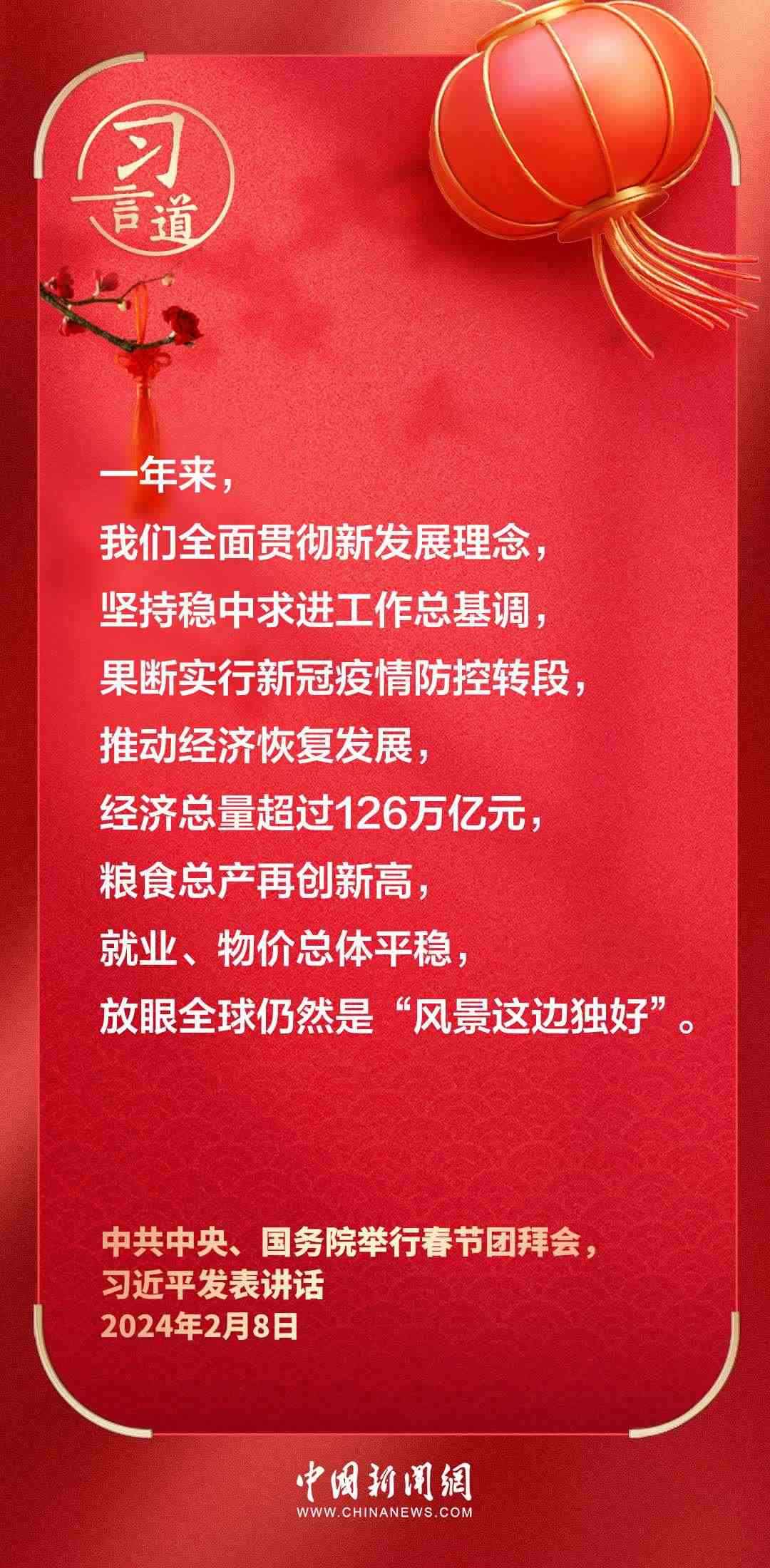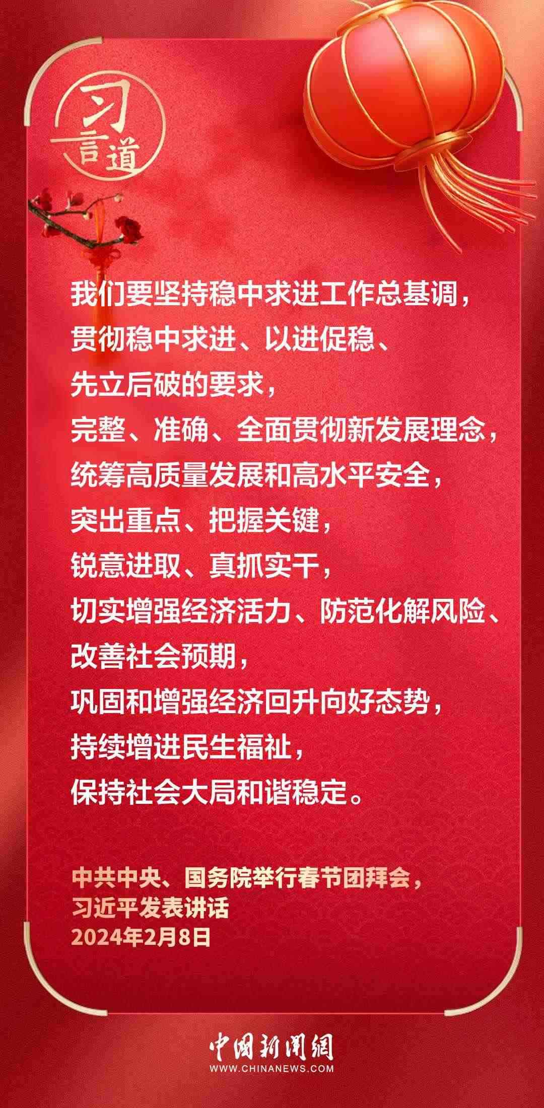 中共中央、國務(wù)院8日上午在人民大會堂舉行2024年春節(jié)團(tuán)拜會。中共中央總書記、國家主席、中央軍委主席習(xí)近平發(fā)表講話——