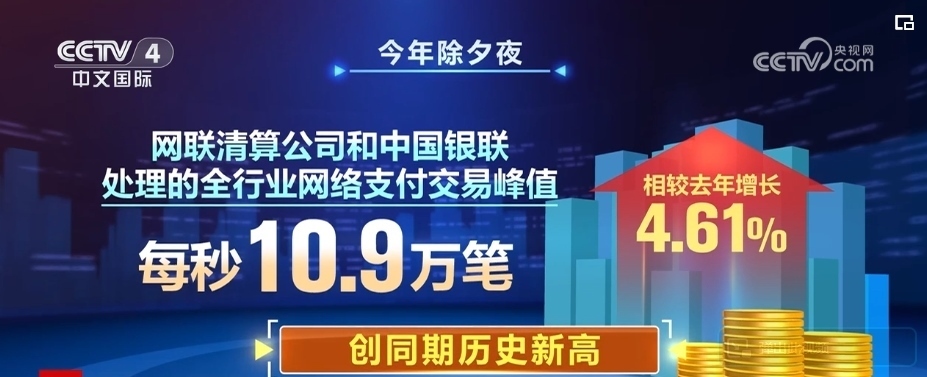 中國人民銀行最新數據顯示,2024年除夕夜,伴隨著零點鐘聲的敲響,網聯清算公司和中國銀聯處理的全行業(yè)網絡支付交易達到峰值,最高并發(fā)量為每秒10.9萬筆,相較2023年增長4.61%,創(chuàng)同期歷史新高。