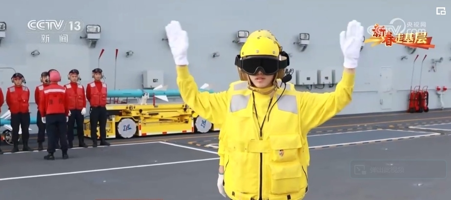 引導(dǎo)員唐曉菁的工作是負責(zé)引導(dǎo)艦載機就位、起飛。由于甲板上設(shè)備眾多,她的一舉一動都至關(guān)重要,戰(zhàn)機起飛時,她的戰(zhàn)位距離飛機發(fā)動機只有不到20米。