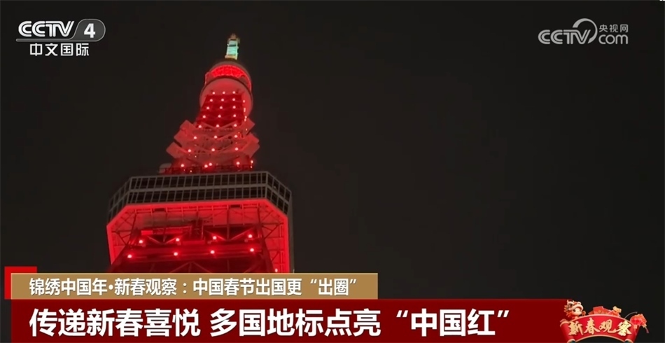 為歡慶春節(jié),多國地標(biāo)建筑都點亮了“中國紅”。英國倫敦的巨型摩天輪“倫敦眼”亮起紅色和金色燈光,象征幸福吉祥;在日本東京,東京塔換上一身紅裝,為龍年送上祝福;加拿大最大城市多倫多市的地標(biāo)建筑加拿大國家電視塔也在落日一個小時后開始“亮紅”,迎接龍年新春的到來。