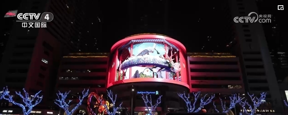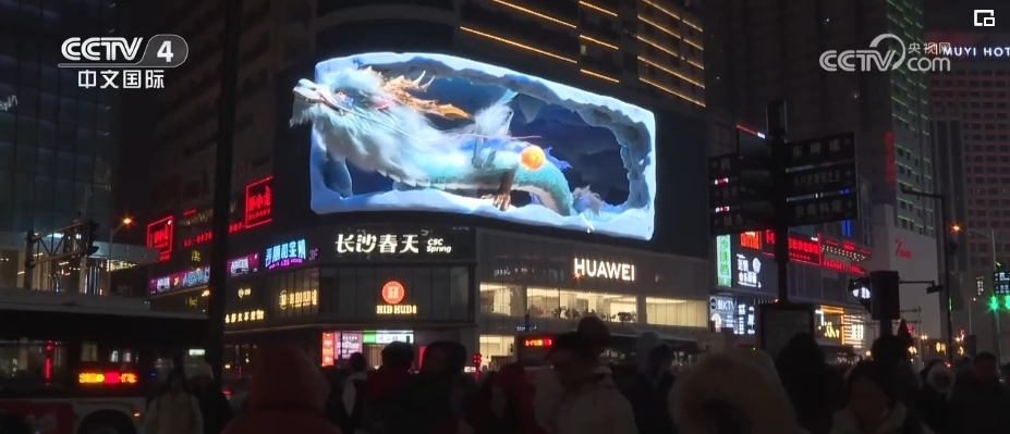 隨著夜幕降臨,在上海市南京西路這家商場(chǎng)戶(hù)外大屏,在裸眼3D技術(shù)的加持下,一條靈動(dòng)時(shí)尚的“光影巨龍”騰飛而出。同時(shí),上海南京西路商圈的多個(gè)地標(biāo)建筑,也開(kāi)啟了春節(jié)燈光演繹。