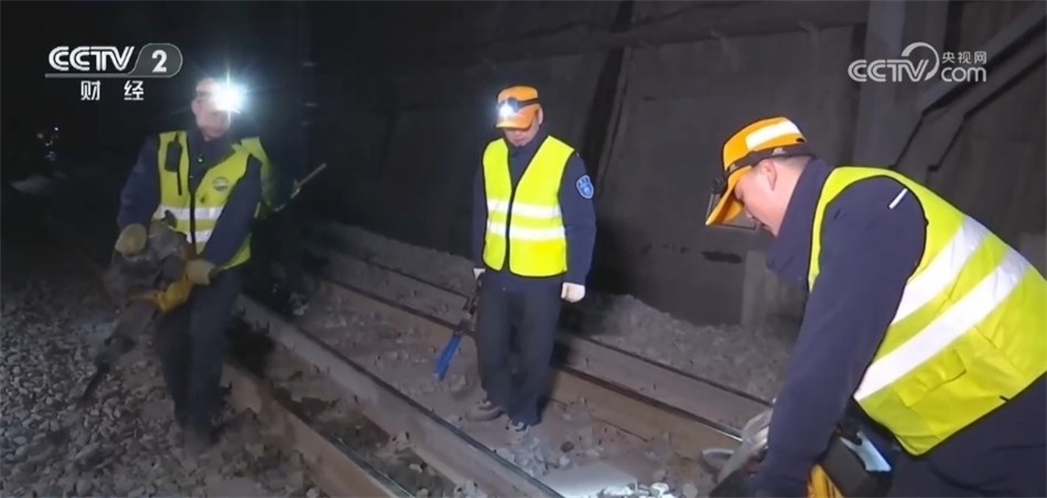 央視網(wǎng)消息:春運(yùn)期間,在襄渝鐵路川陜交界的巴山線路維修工區(qū),副工長王庭虎和他的工友們正在加緊線路設(shè)備養(yǎng)護(hù)。春運(yùn)期間,他們的工作量是平常的3倍,忙碌的工作只為守護(hù)旅客的平安路。