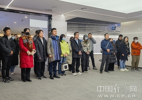 2023年12月18日,浙江大學師生代表隨團在浙江杭州中國視谷調研。左二為浙江大學學生蔡安禧,左三為浙江大學學生金姚烗,左四為浙江大學馬克思主義學院教師陳曉偉。(中國經(jīng)濟網(wǎng)記者 王巖/攝)